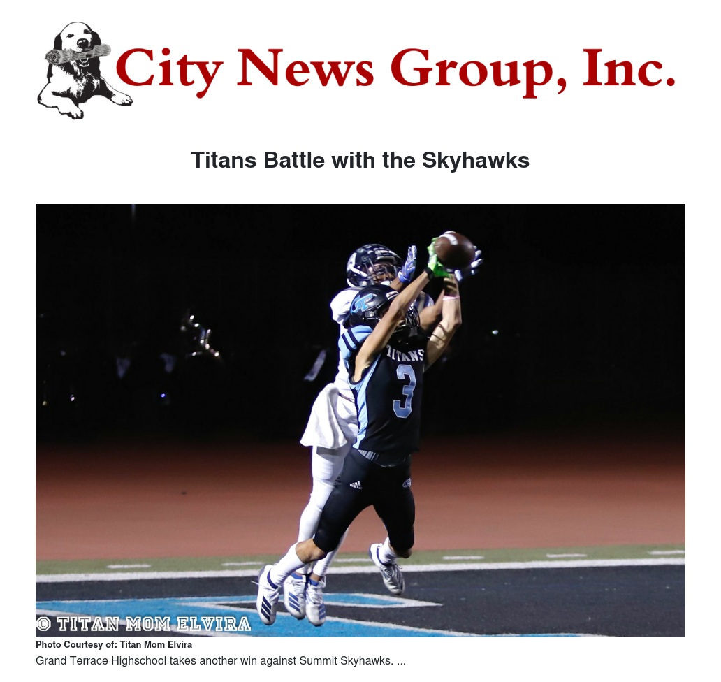 Grand Terrace Titans had a great drive led by the running ability of Rohan Preston #20. Turnover on downs after an incomplete pass that led to Lonzel Bradford #13 hurting his arm barely walking off the field but was cleared to play the rest of the game.