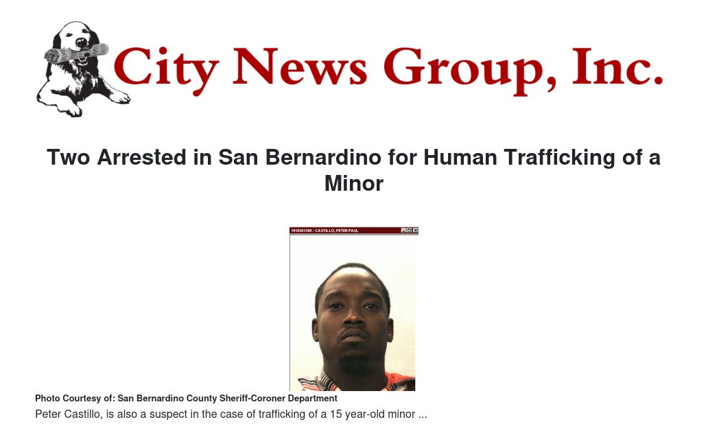 Upon concluding the interviews, Castillo was transported Central Detention Center for booking, while Terrell was transported to West Valley Detention Center for booking. Both were booked for felony violations related to Human Trafficking of a Minor. Castillo is being held in lieu of $550,000 bail and a No Bail violation related to him being arrested while out on bail for a prior San Bernardino County charge for Human Trafficking. Terrell is being held in lieu of $150,000 bail.