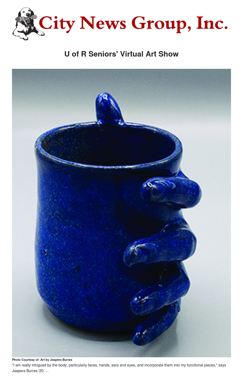 "I am really intrigued by the body, particularly faces, hands, ears and eyes, and incorporate them into my functional pieces," says Jaspera Burres '20.