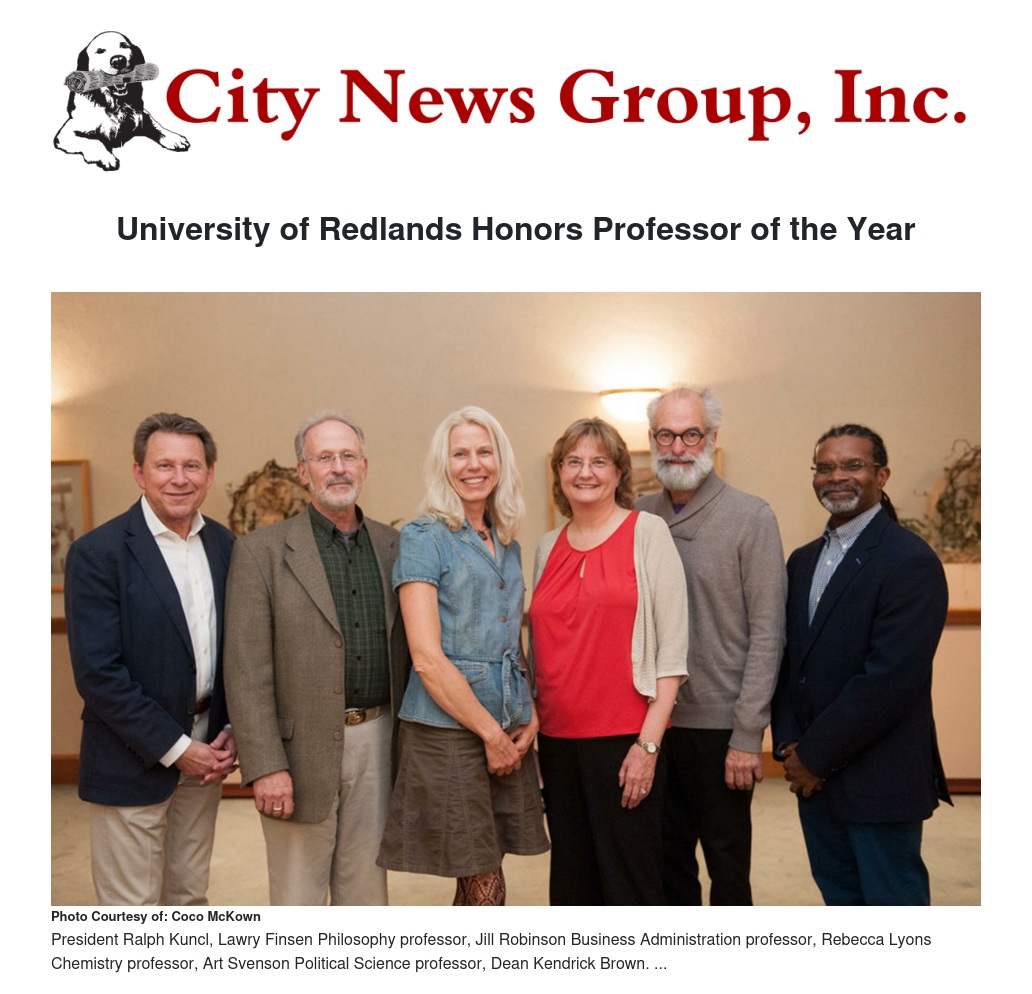 "I am deeply touched to receive this award as it comes from the students," Robinson said. "It is an honor to be a part of their education at the University of Redlands as they are destined to change the world for the better."