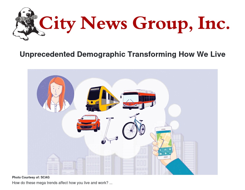 “Southern California has always been a uniquely innovative and adaptive region, but the level of change we’re experiencing now is unlike anything we’ve ever seen,” said Bill Jahn, President of SCAG. “For individual cities and the region as a whole, understanding how these transformative forces are likely to play out will better prepare us to meet the challenges and create new opportunities.”