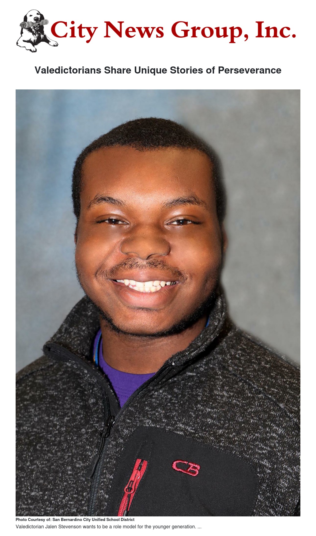 There’s Jalen Stevenson, who is making history not because he’s among nine Cajon High School seniors graduating at the top of their class. Jalen, 17, is the only African-American valedictorian at Cajon High and the District this year.