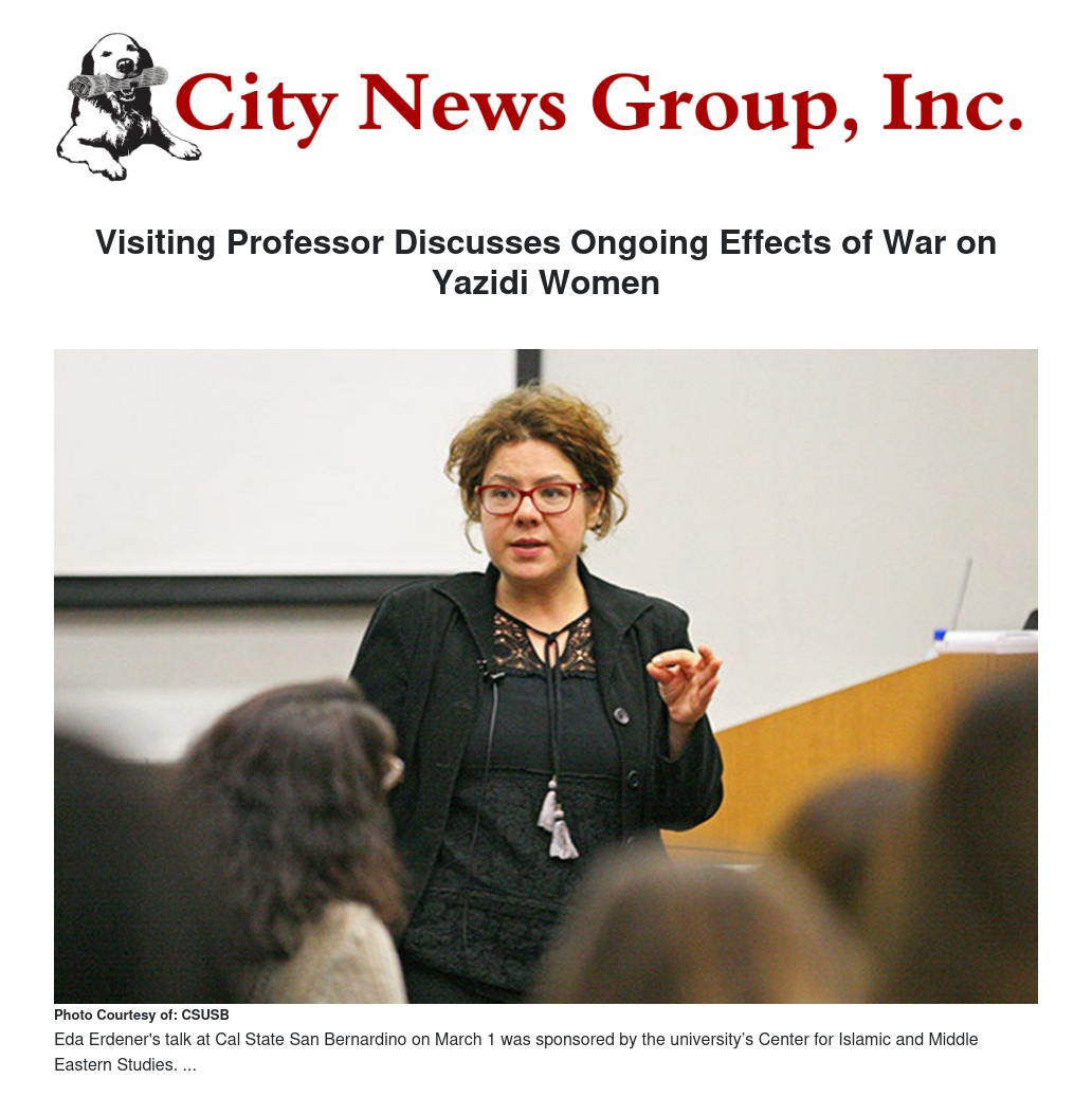 In her presentation, “Women After War: What We Learned From the Yazidis as an Ethnic Minority,” visiting Turkish scholar Eda Erdener shared how she saw up close the ways Yazidi women coped in the aftermath of it all. Her talk at Cal State San Bernardino on March 1 was sponsored by the university’s Center for Islamic and Middle Eastern Studies.