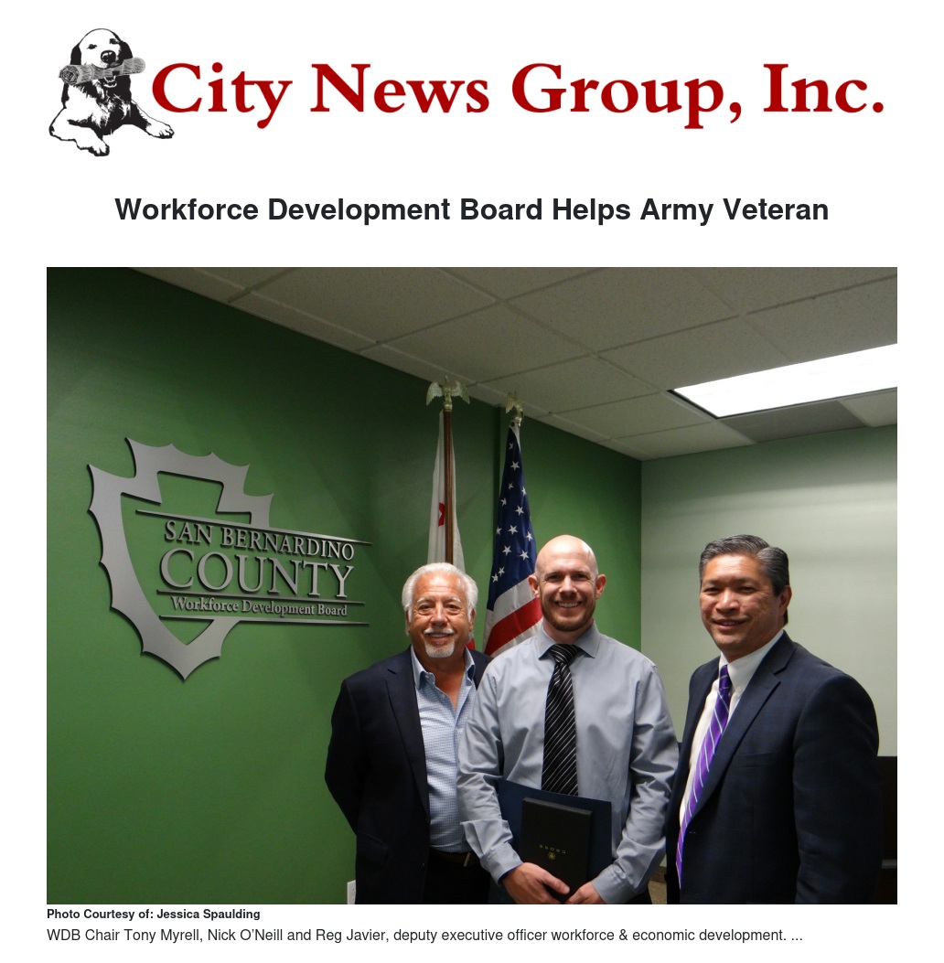 O’Neill also took advantage of the opportunity to participate in a WDB Job Fair where he was introduced to General Atomics, a leading designer and manufacturer of Unmanned Aircraft Systems (UAS), radars, and electro-optic and other related mission systems. The firm is a major employer in the High Desert with a large facility in Victorville.